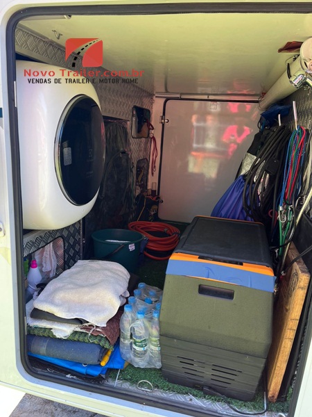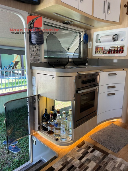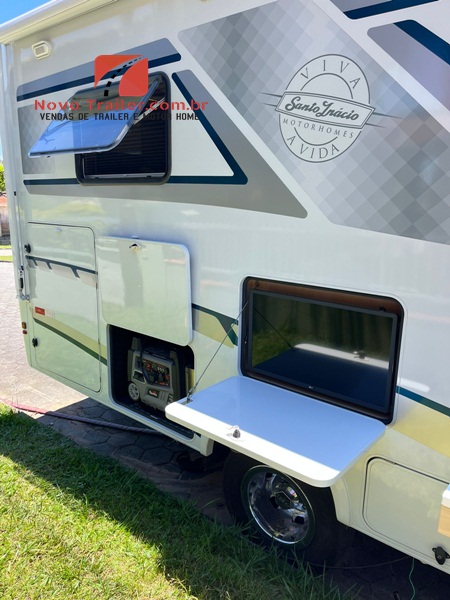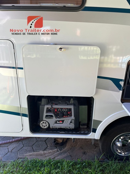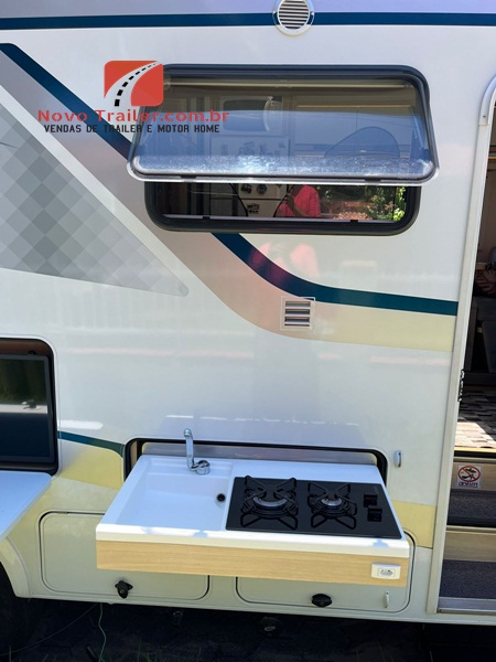 EXTERNAMENTE ESTE MOTOR HOME CONTA COM TOLDO DOMETIC AUTOMÁTICO, COZINHA EXTERNA COM PIA E FOGÃO COOK TOP DUAS BOCAS, LAVADORA DE ROUPAS 3KG LAVA E SECA, SAPATAS DE NIVELAMENTO AUTOMÁTICAS, BAGAGEIRO TRASEIRO TRANSPASSANTE PARA LEVAR UMA MOTO PEQUENA.