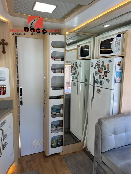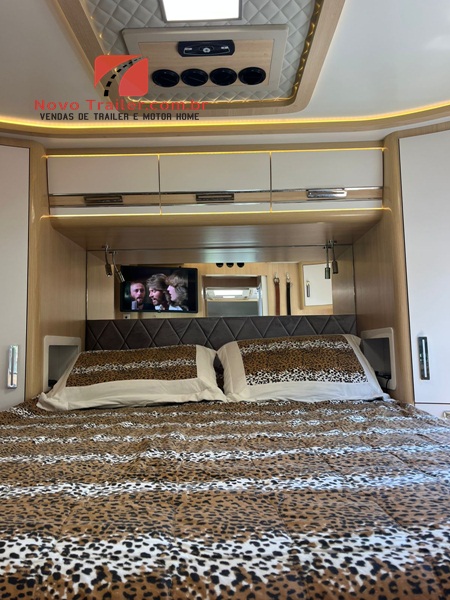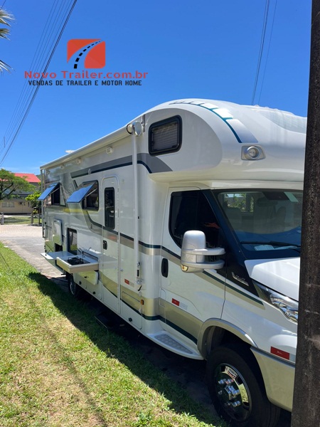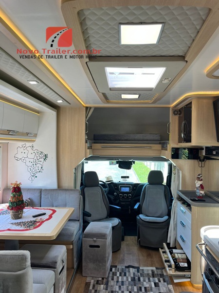 MOTOR HOME MONTADO EM CHASSI CABINE, DUAS POLTRONAS PERSONALIZADAS EM COURO, AR CONDICIONADO DE CABINE, DIREÇÃO ELÉTRICA, VIDROS E TRAVAS ELÉTRICAS, CÂMERA DE RÉ E MULTIMÍDIA.