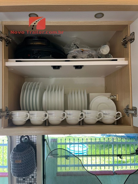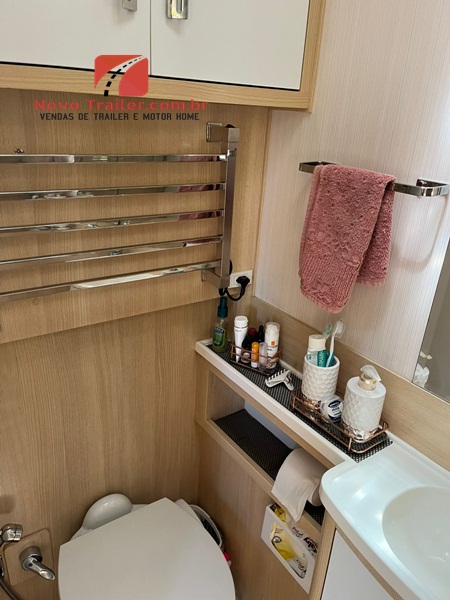 BOMBA DE ÁGUA AUTOMÁTICA, TANQUE DE ÁGUA POTÁVEL 350L, TANQUE DE DETRITO 245L, TANQUE DE ÁGUA SERVIDA 145L, VASO SANITÁRIO IMPORTADO COM DUCHA HIGIÊNICA, CHUVEIRO COM AQUECEDOR TIPO BOILER.