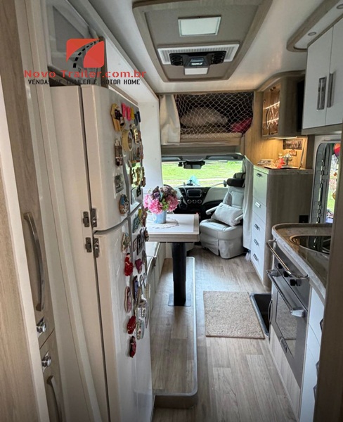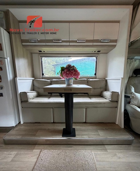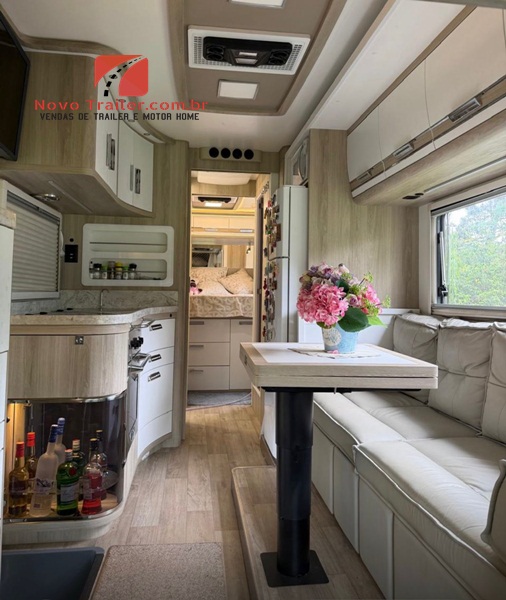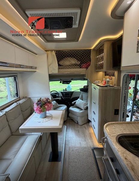 MOTOR HOME MONTADO EM CHASSI CABINE, DUAS POLTRONAS PERSONALIZADAS EM COURO, AR CONDICIONADO DE CABINE, DIREÇÃO ELÉTRICA, VIDROS E TRAVAS ELÉTRICAS, CÂMERA DE RÉ E MULTIMÍDIA .
