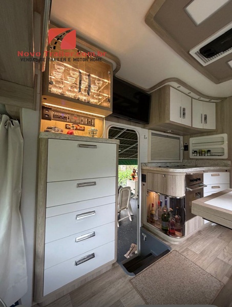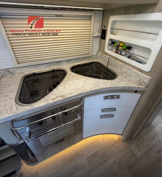 EXTERNAMENTE ESTE MOTOR HOME CONTA COM TOLDO DE ROLO IMPORTADO ELÉTRICO, COZINHA EXTERNA COM PIA E FOGÃO COOK TOP DUAS BOCAS, LAVADORA DE ROUPAS 3KG LAVA E SECA, TV EXTERNA, SAPATAS DE NIVELAMENTO HIDRÁULICOS , BAGAGEIRO TRASEIRO TRANSPASSANTE PARA LEVAR UMA MOTO PEQUENA.