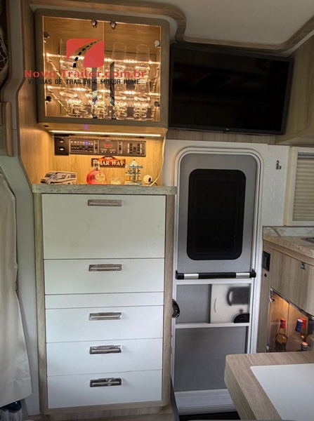 INTERNAMENTE CONTA COM LUZES EM LED POR TODO O MOTOR HOME, TV 32″, ANTENA IMPORTADA PARA TV ABERTA, CAMA ACIMA DA CABINE, CLARABOIA IMPORTADA NO BOX, COMPUTADOR DE BORDO PARA NÍVEIS DE AGUAS/DETRITO, VÁLVULAS COM ACIONAMENTO ELÉTRICO POR DENTRO DA CABINE PARA DRENAR AGUA SERVIDA E DETRITOS, JANELAS IMPORTADAS COM BLACKOUT E MOSQUITEIRO, PORTA COM TELA MOSQUITEIRO, BALCÃO DE COZINHA COM FOGÃO COM FORNO E PIA, GELADEIRA BIPLEX, FORNO MICRO-ONDAS, AR CONDICIONADO CENTRAL, AR CONDICIONADO 12V, SOFÁ REVERSÍVEL EM CAMA DE SOLTEIRO, QUARTO COM CAMA DE CASAL AO COMPRIDO COM MASSAGEADOR NO COLCHÃO, TV LED E VÁRIOS ARMÁRIOS.