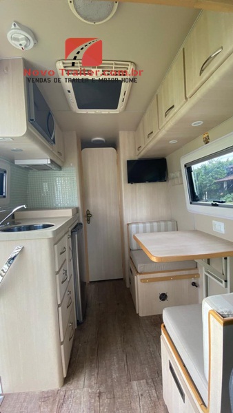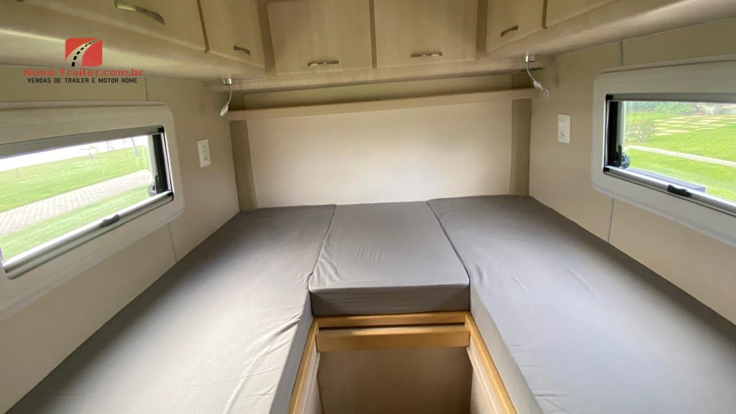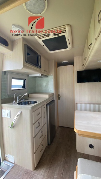 INTERNAMENTE:  COZINHA CONTA COM BALCÃO COM PIA E FOGÃO COOKTOP DUAS BOCAS, EXAUSTOR,   MICRO-ONDAS, FRIGOBAR ELBER 12V, AR CONDICIONADO CENTRAL DOMETIC,  ANTENA STAR LINK, ARMÁRIOS SUPERIORES E INFERIORES, TV DE 24″ BANHEIRO COM BOX SEPARADO, VASO SANITÁRIO CASSETE.