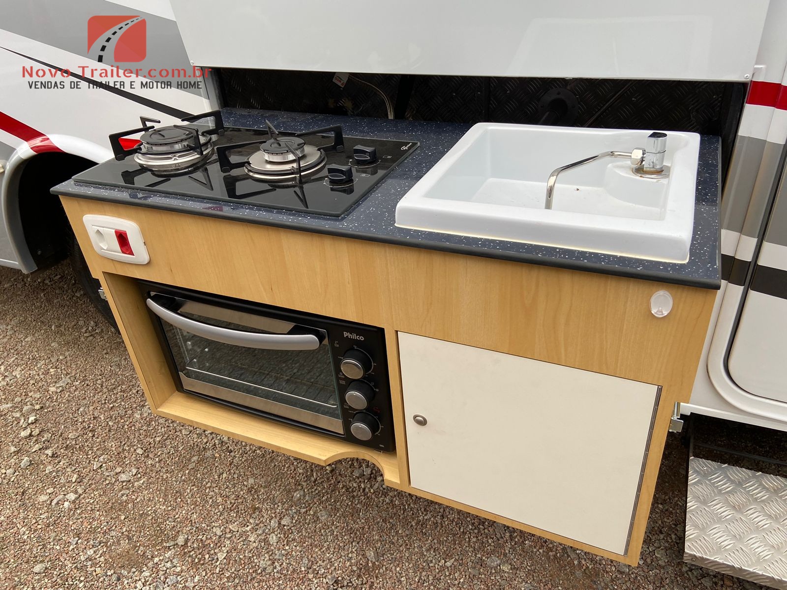 EXTERNAMENTE ESTE MOTOR HOME CONTA COM TOLDO ELÉTRICO DE ROLO NACIONAL, COZINHA EXTERNA COM PIA, FOGÃO COOCKTOP DUAS BOCAS, FORNO ELÉTRICO, LAVADORA DE ROUPAS LAVA 3 KG, SAPATAS HIDRÁULICOS, PORTA IMPORTADA COM BLACKOUT E TELA MOSQUITEIRO.