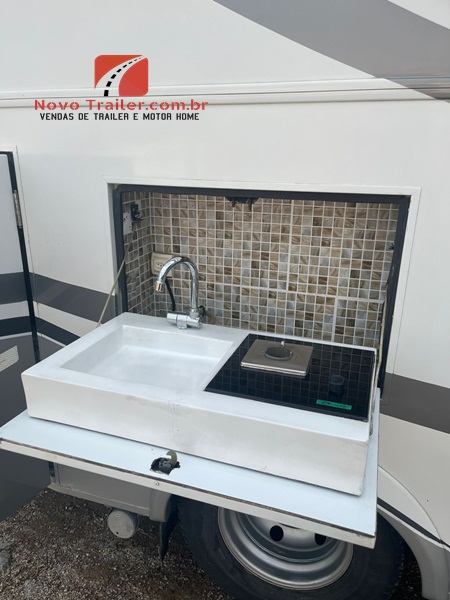 NA PARTE EXTERNA CONTA COM BAGAGEIRO TRASEIRO, MAQUINA LAVA E SECA 3K, TOLDO NACIONAL DE ROLO , FOGÃO 1 BOCA E PIA.