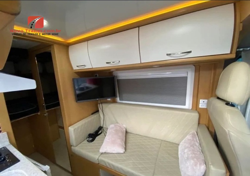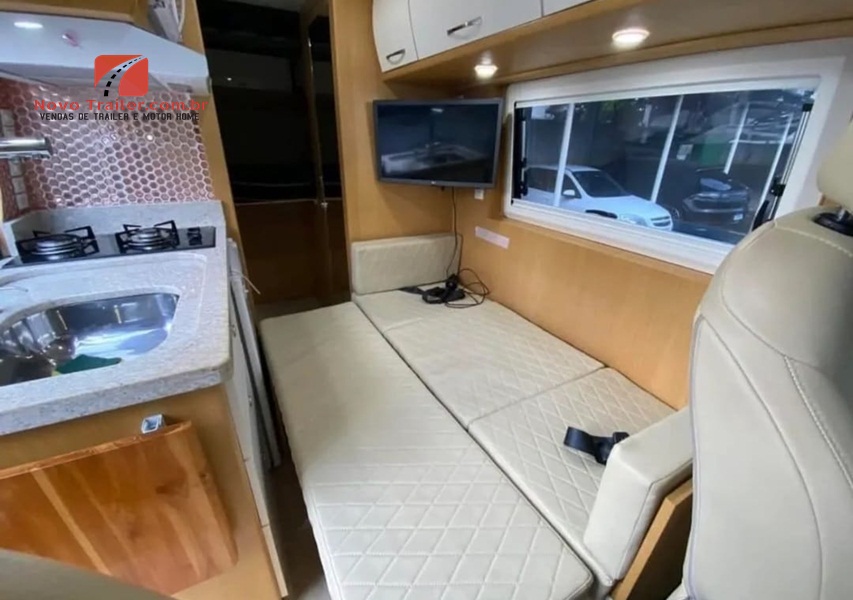MOTOR HOME COM SUSPENSÃO TRASEIRA REFORÇADA, VIDROS E TRAVAS ELÉTRICAS, DIREÇÃO HIDRÁULICA, AR CONDICIONADO DE CABINE, CENTRAL MULTIMÍDIA COM CÂMERA DE RÉ, SISTEMA DE AVISO DE TROCA DE MARCHAS E BANCOS COM REVESTIMENTO ESPECIAL SENDO O DE PASSAGEIRO GIRATÓRIO.