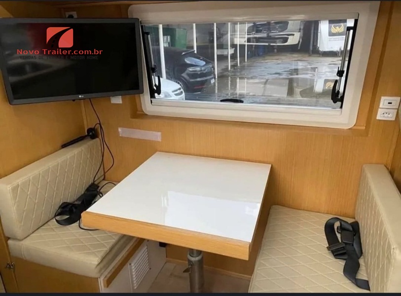 NA PARTE INTERNA CONTA COM MESA DINETE QUE SE CONVERTE EM CAMA DE CASAL,ILUMINAÇÃO EM LED, BLACKOUT NO PARA-BRISA, JANELAS IMPORTADAS COM BLACKOUT E MOSQUITEIRO, COZINHA COM PIA EM GRANITO, TORNEIRA COM ÁGUA QUENTE E FRIA, DISPENSER DE DETERGENTE, FOGÃO DUAS BOCAS COOKTOP COM ACIONAMENTO AUTOMÁTICO, EXAUSTOR, FRIGOBAR 127L 12V, MICROONDAS, TV SMART 24P, NO QUARTO CONTA COM CAMA DE CASAL , AR CONDICIONADO SPLIT INVERTER QUENTE E FRIO, CLIMATIZADOR 12V, ESPELHO CORPO INTEIRO NA PORTA E ARMÁRIOS.