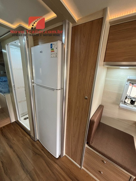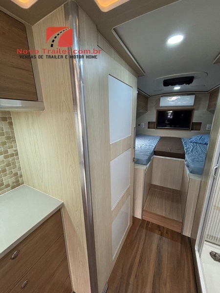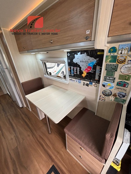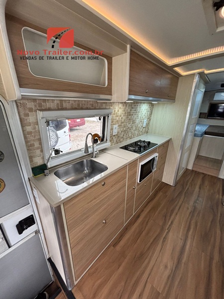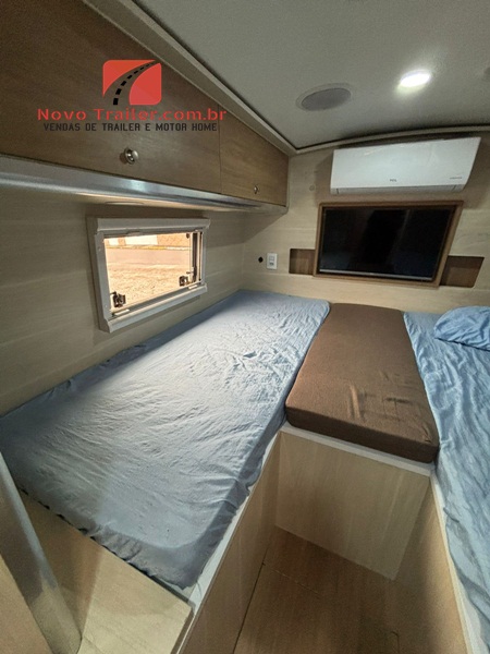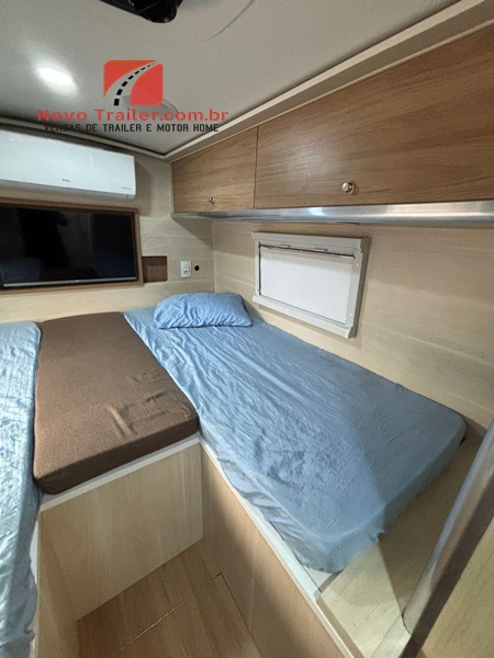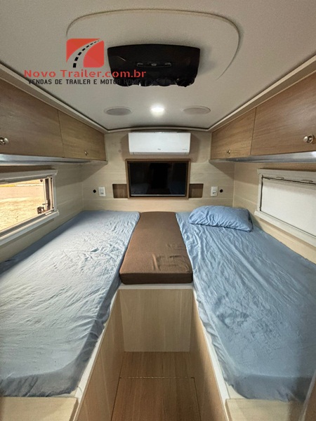 INTERNAMENTE CONTA COM MESA DINETE QUE SE CONVERTE EM CAMA, JANELAS COM BLACKOUT E MOSQUITEIROS, COZINHA COM PIA EM GRANITO, FOGÃO DUAS BOCAS COOKTOP, MICRO-ONDAS, GELADEIRA BI PLEX 12V, AR- CONDICIONADO 12 V, NO QUARTO CONTA COM CAMA DE CASAL, AR CONDICIONADO SPLIT, CLIMATIZADOR 12V, TV LED E ARMÁRIOS, BANHEIRO COM BOX SEPARADO DO SANITÁRIO.
