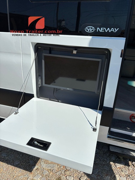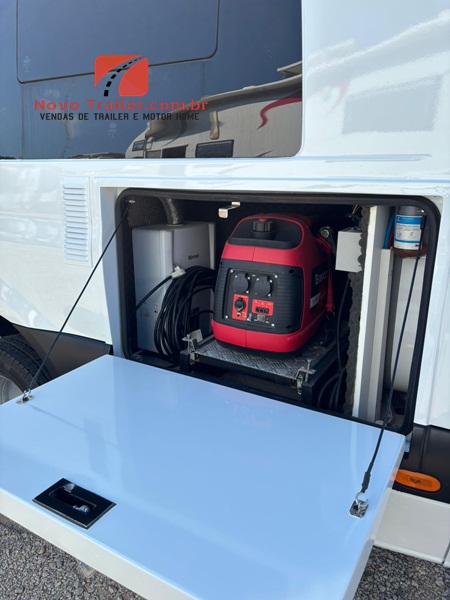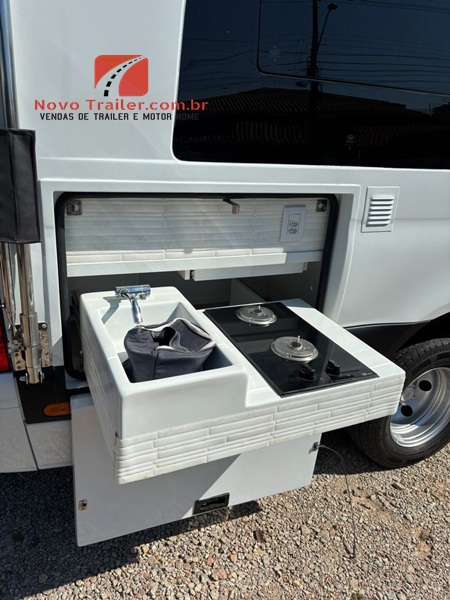 EXTERNAMENTE CONTA COM TOLDO NACIONAL ELÉTRICO, DUCHA EXTERNA, SAPATAS HIDRÁULICAS DE NIVELAMENTO, ILUMINAÇÃO EXTERNA, CÂMERAS DE MONITORAMENTO,  BAGAGEIRO, ENTRADA PARA ÁGUA EXTERNA, LAVA ROUPAS LAVA 3KG E SECA 1KG, TV LED, COZINHA EXTERNA COM FOGÃO COOKTOP DUAS BOCAS.