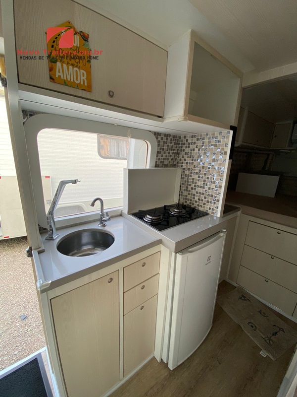 INTERNAMENTE CONTA COM BALCÃO COM PÍA E FOGÃO DUAS BOCAS, FRIGOBAR, AR CONDICIONADO SPLIT, DINETE PARA DUAS PESSOAS QUE SE CONVERTE EM CAMA PARA SOLTEIRO, VASO SANITÁRIO PORTA POTTI, NO ESPAÇO PARA BANHO E UMA PIA.