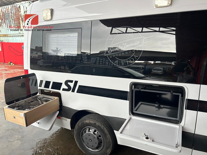 EXTERNAMENTE CONTA COM TOLDO IMPORTADO ELÉTRICO, DUCHA EXTERNA, SAPATAS HIDRÁULICAS DE NIVELAMENTO, ILUMINAÇÃO EXTERNA, BAGAGEIROS, ENTRADA PARA ÁGUA EXTERNA, LAVA ROUPAS LAVA 3KG E SECA 1KG, TV LED, KIT FOGÃO/PIA IMPORTADO DOMETIC DUAS BOCAS.