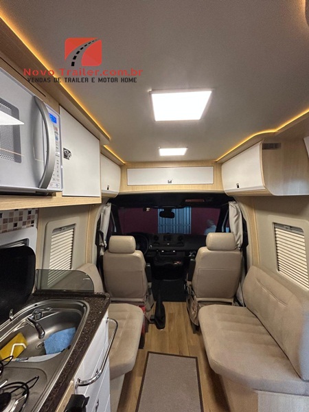 MOTORHOME MONTADO SOBRE CHASSI SPRINTER 416. EQUIPADO COM AR-CONDICIONADO DE CABINE, DIREÇÃO ELÉTRICA, TRIO ELÉTRICO, VOLANTE MULTIFUNCIONAL, CÂMERA DE RÉ, SENSOR DE ESTACIONAMENTO, FARÓIS DE MILHA, MULTIMÍDIA E BANCOS EM COURO.