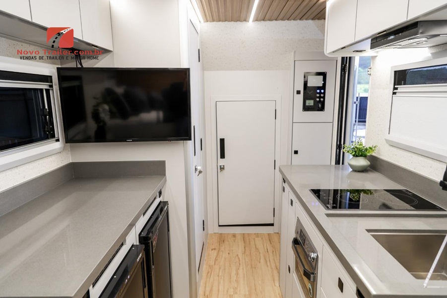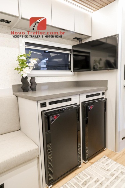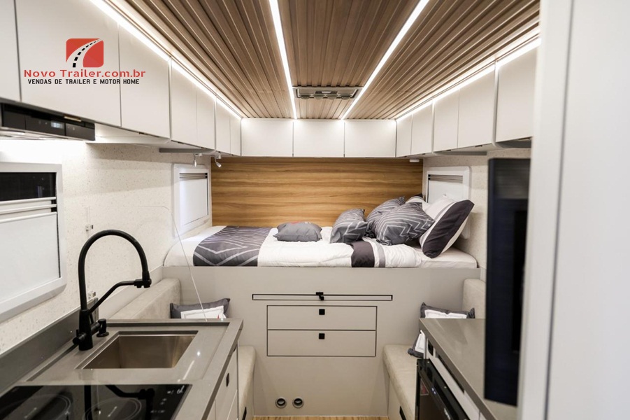 EXTERNAMENTE CONTA COM TOLDO DE ROLO IMPORTADO, ILUMINAÇÃO EXTERNA, ILUMINAÇÃO NOS BAGAGEIROS, ENTRADA PARA ÁGUA EXTERNA, LAVA ROUPAS 3KG, TV LED, FOGÃO DE INDUÇÃO.